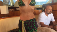 Pielea de pe abdomenul creatoarei pare foarte tensionata, iar buricul nu are o forma obisnuita, semn ca pana si acolo pare a fi facut o interventie chirurgicala.