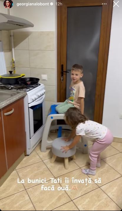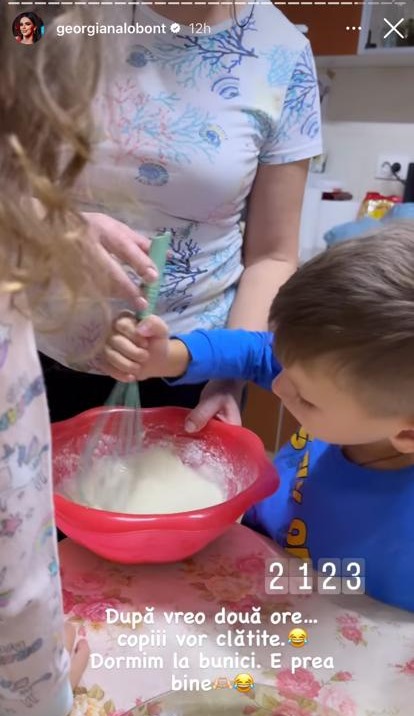 Activitățile în familie nu se sfârșesc aici. După ce au depus efort considerabil la joacă, cu toții au trecut la gătit, în bucătăria bunicii. Cei mici au fost ajutor de nădejde la gătit și, pentru ca seara să se încheie așa cum se cuvine, s-au răsfățat cu un desert preparat chiar de ei, clătite, sub stricta supraveghere a bunicii micuților și a Georgianei Lobonț.
