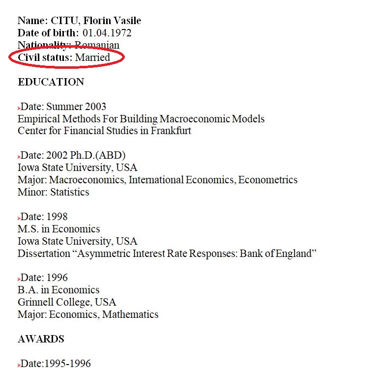 Conform CV-ului, Florin Cîțu era căsătorit la acea dată însă nu avea copii! Informația este cu atât mai surprinzătoare cu cât Florin Cîțu nu a pomenit niciodată despre o soție sau despre un divorț prin care ar fi trecut fie în țară fie peste hotare. De asemenea, identitatea femeii cu care Florin Cîțu ar fi fost căsătorit rămâne un mister până astăzi.