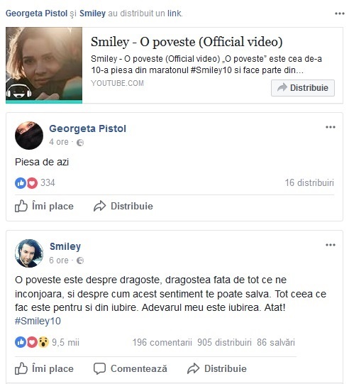 Discret, insa totodata in vazul tuturor, Gina Pistol a distribuit pe Facebook noua melodie a iubitului ei.