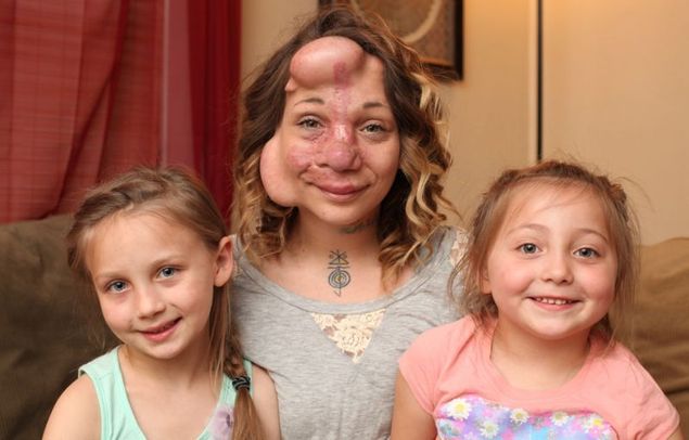 Este mama a doi copii, dar boala ei o poate ucide in orice clipa. Ea sufera de malformatii arterio avand niste conexiuni anormale intre artere si venele din zona fetei.