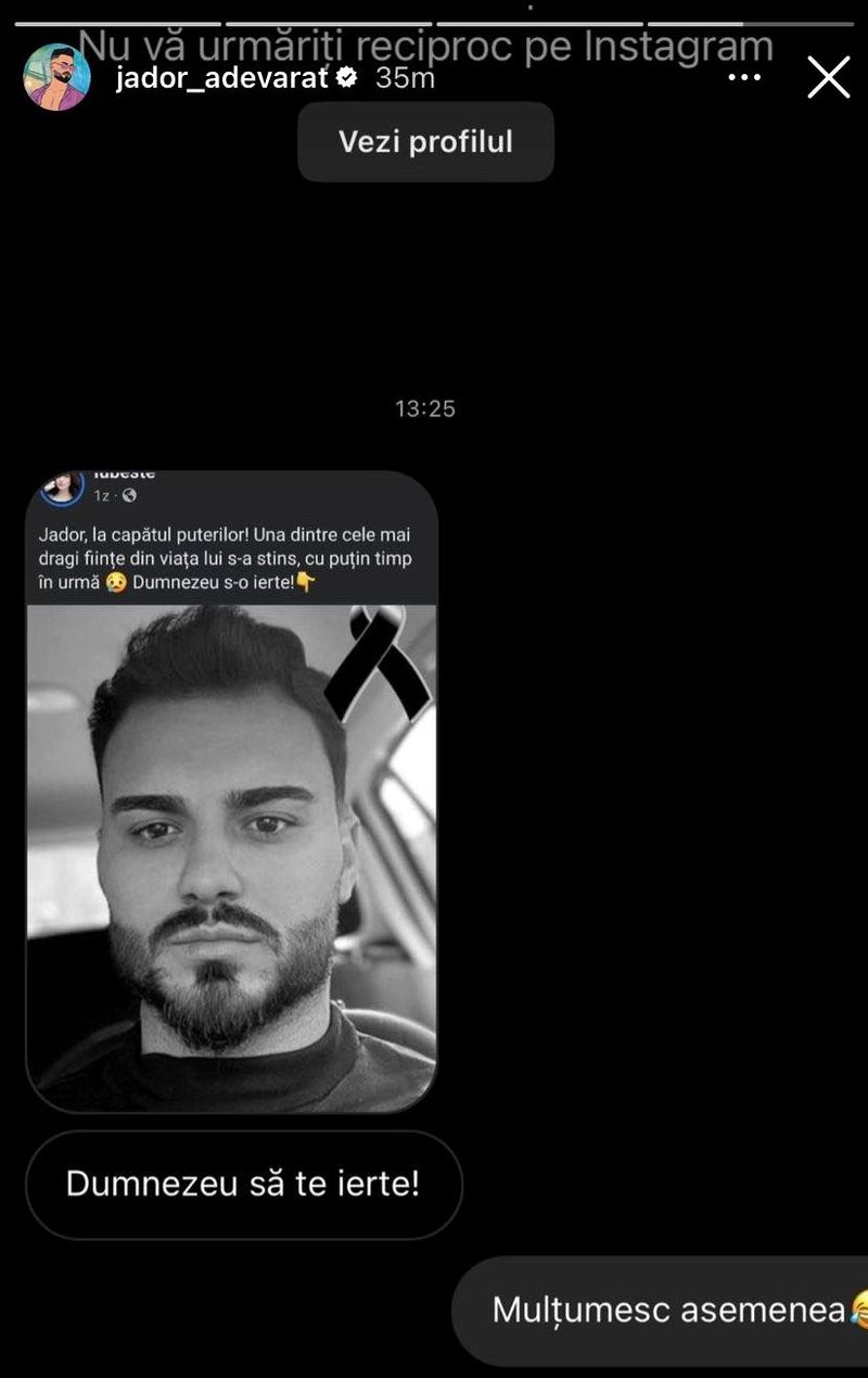 În urmă cu foarte puțin timp, Jador a făcut publică o conversație dintre el și un urmăritor de pe Instagram, care îi transmitea artistului un mesaj năucitor. Internautul i-a trimis lui Jador o știre care anunța faptul că bunica acestuia s-a stins din viață, însă mesajul care însoțea acea știre l-a lăsat pe artist fără cuvinte. Celebrului cântăreț nu i-a venit să creadă ce i-a putut scrie fanul său de pe internet și a făcut imediat conversația publică.