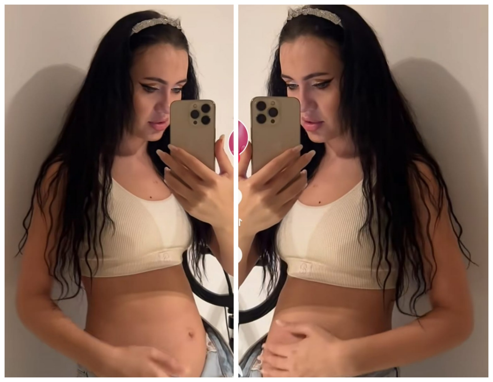 „ Din față totul bine și frumos. Dintr-o parte, gravidă... sau balonată, nici nu știu. Voi ce ziceți?”, a spus Bianca Comănici în videoclipul postat pe TikTok.