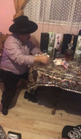 Acesta a fost filmat langa brad, in timp ce numara un teanc imens din bancnote de lire sterline, iar pe masa se aflau peste 10 sticle de whisky si coniac. „Craciun fericit la toata lumea”, le-a urat Puiu Englezu amicilor sai.