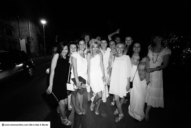 „Au trecut 4 ani de la petrecerea mea de burlacite, dar pot sa va spun – fara niciun fel de exagerare – ca e inca pomenita in grupul meu de prietene, cu expresii de genul “mega petrecere”, “oh, doamne”, “ce seara!”, “a fost fatala” si “cine erau tipii aia totusi?”. Sa va spun cum s-au intamplat lucrurile, caci poate va inspira pentru viitoarele petreceri de burlacite la care veti participa. Eu stiam ca urmeaza sa ma vad intr-o luni seara cu Laura Cosoi, la o terasa. Doar ca atunci cand am ajuns, le-am gasit pe toate prietenele mele imbracate in alb si cu coronite de flori pe cap, gata de petrecere (ma rog, comunicarea nu a fost impecabila si cateva au ajuns imbracate si in negru…). Intamplarea a facut ca eu sa fiu imbracata in acea seara tot in alb, intr-o rochie pe care de cate ori o zaresc in dressing acum, de fiecare data imi zic in gand: “hmmm…burlacite”.