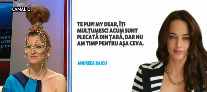 N-au gasit-o acasa, dar au facut tot posibilul sa dea de ea si pana la urma s-au ales cu un raspuns prin SMS. „Te pup! My dear, iti multumesc! Acum sunt plecata din tara, dar nu am timp pentru asa ceva. Am foarte multa treaba pe care o organize in functie de prioritati, iar asta nu reprezinta o prioritate pentru mine”, a transmis Andreea.