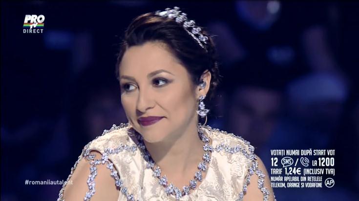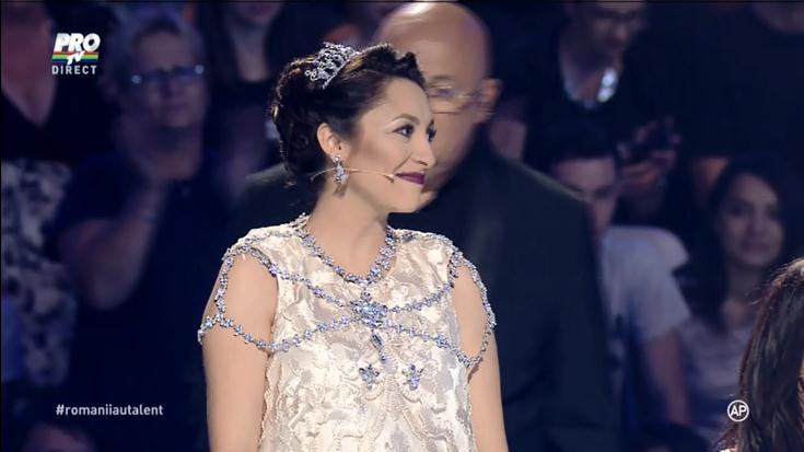 Andra a fost o adevarata aparitie in aceasta seara la „Romanii au talent”. Artista a purtat o rochie lejera, confortabila, dar extrem de eleganta. Tinuta de culoare deschisa, cu imprimeuri putin reliefate, a fost accesorizata cu bijuterii care au facut-o sa straluceasca la propriu.