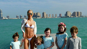 Are cinci copii cu vârste cuprinse sub zece ani şi petrece ore în şir în sala de fitness, fapt pentru care se mândreşte cu un trup de adolescentă, fără pic de celulită.