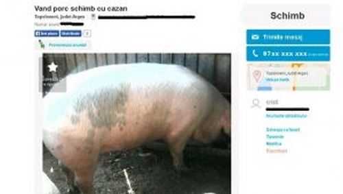 “Vând porci de Crăciun sau schimb cu cazan de ţuică, am disponibili două bucăţi 170 – 190kg. Mai multe informaţii la telefon”, este anuntul postat de barbatul imediat.