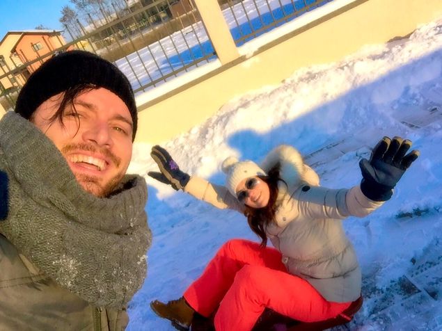 E distractie, ce misto! Uite-i pe Tavi Clonda si Gabi Cristea cum se bucura ca niste copii de zapada! Fotografii geniale!