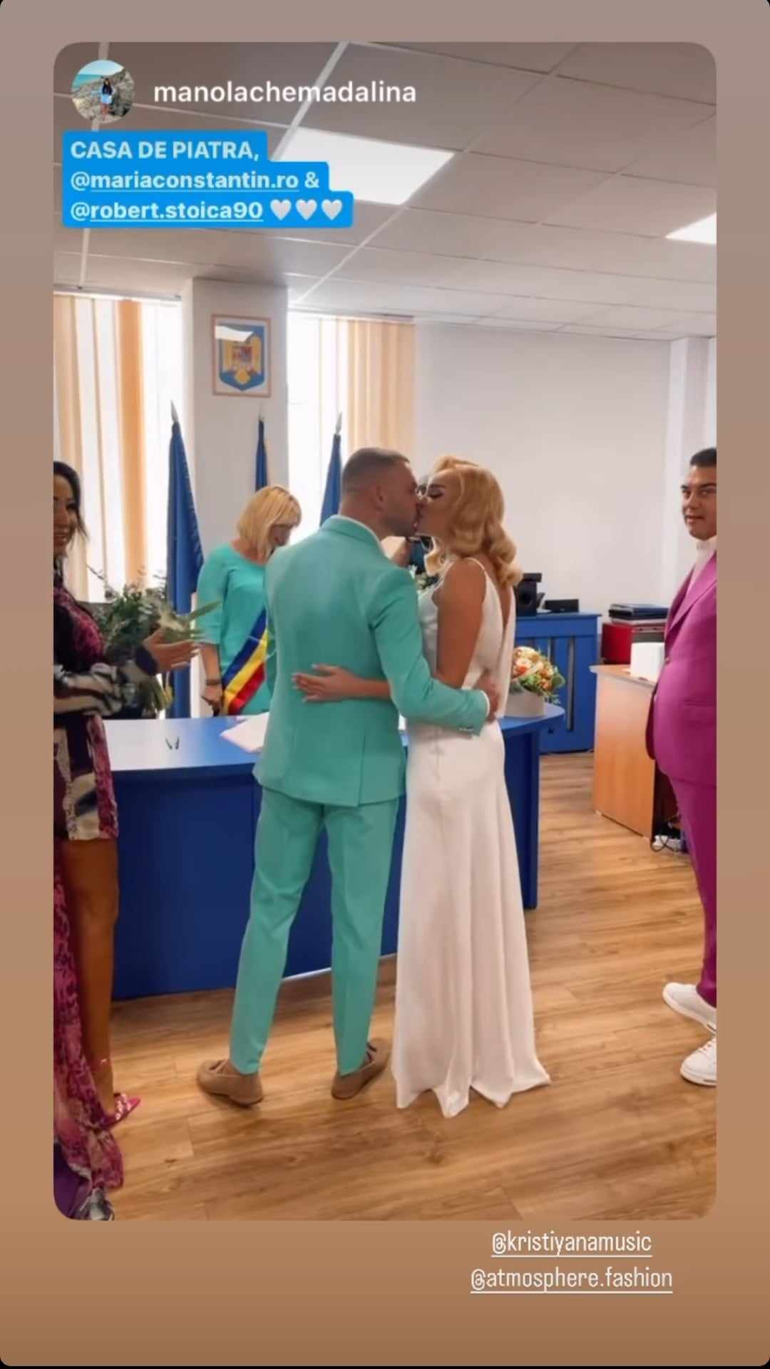 Cei doi au ales să facă un eveniment restrâns, așa că au mers la altar doar alături de familie și câțiva prieteni apropiați. Mai mult decât atât, petrecerea nu va avea loc în această zi, ci pe data de 4 august. Se pare că Maria Constantin a ales să-și onoreze contractele, motiv pentru care diseară va cânta la un alt eveniment. Mai mult decât atât, aceasta a fost singura dată în care artista a avut parte de mai multe ore libere, astfel încât au decis să facă ambele cununii astăzi.