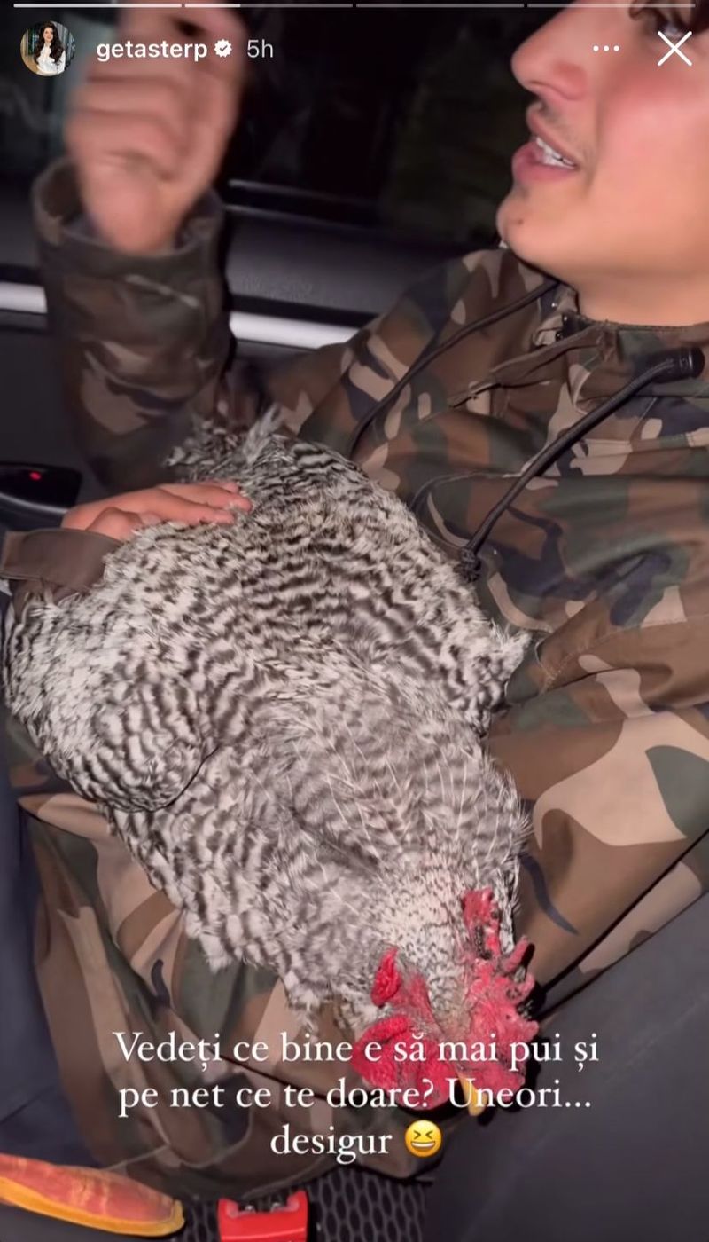 „Asta a pățit mama... E supărată că i-a luat vulpea azi-noapte un cocoș. Are cineva găini mai multe ca să-i înmâneze un cocoș? Dacă da, aștept oferte și poze, să fie gri deschis la culoare. Deci fiți atenți, știți că am pus la story că i-a dispărut lu mami un cocoș și m-a sunat cineva din sat să mă duc la altcineva că e cocoșul acolo și uitați-l în toată splendoarea.”, a spus Geta Sterp în mediul online.