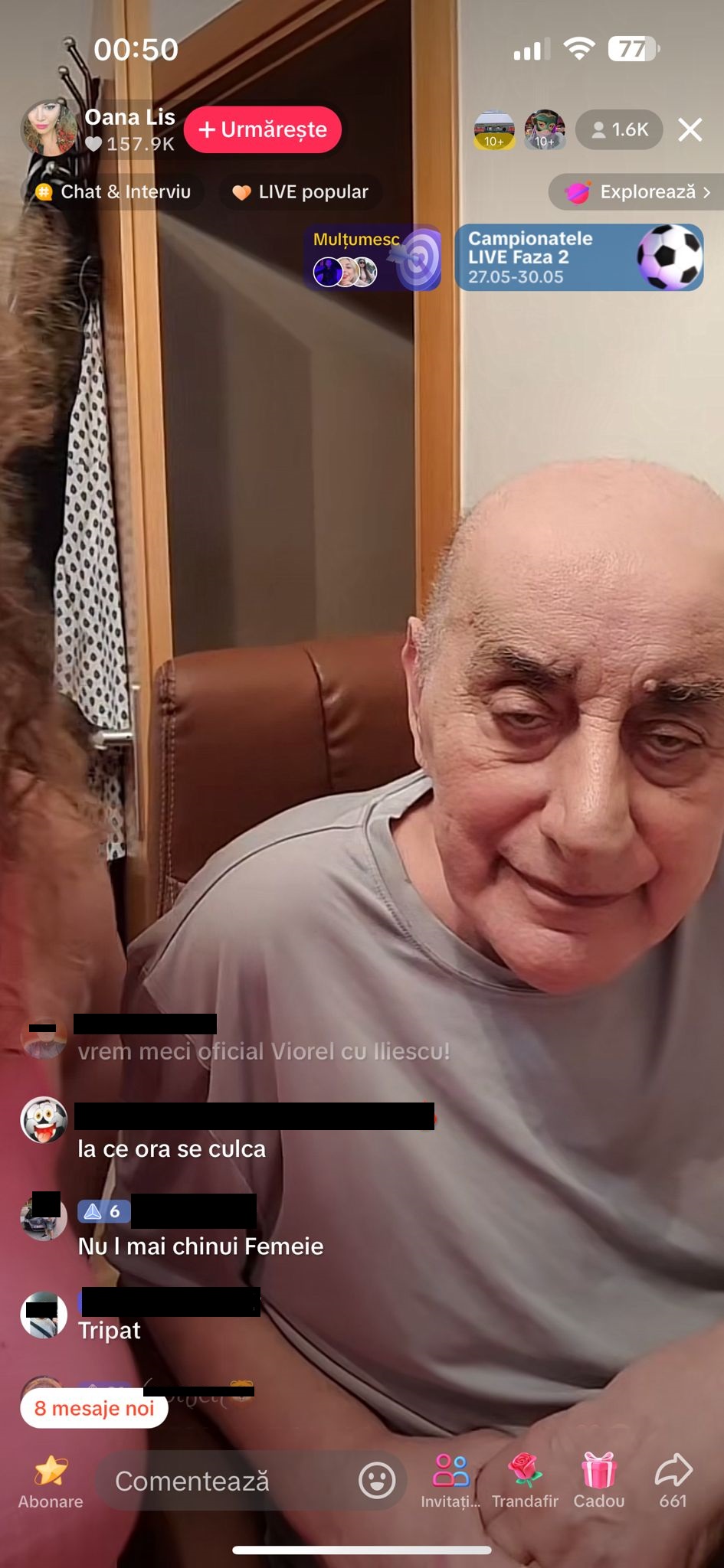 Oana și Viorel Lis au intrat seara trecută pe un live pe TikTok, iar internauții nu au ezitat să scrie mesaje în secțiune de comentarii.