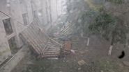 Acoperișul unei clădiri de peste drum a fost smuls de vânt și aruncat direct în ferestrele apartamentului.Fragmentele metalice au distrus pereții și grinzile de susținere, iar una dintre ele a lovit-o mortal pe femeie. Impactul a fost atât de violent încât, spun martorii, echipele de intervenție nu au mai putut face nimic.