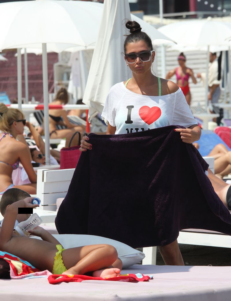 Weekend-ul trecut, paparazzii WOWbiz.ro au surprins-o din nou bruneta pe o plaja de fite din nordul statiunii Mamaia, cu Traian jr si Sofia Anais.