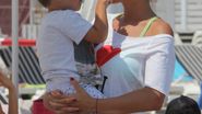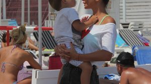 Fiica fostului presedinte al Romaniei a iesit la plaja alaturi de cei doi copii, iar la un moment dat s-a harjonit cu micutul Traian jr, oferindu-i la final un pupic direct pe... suzeta!