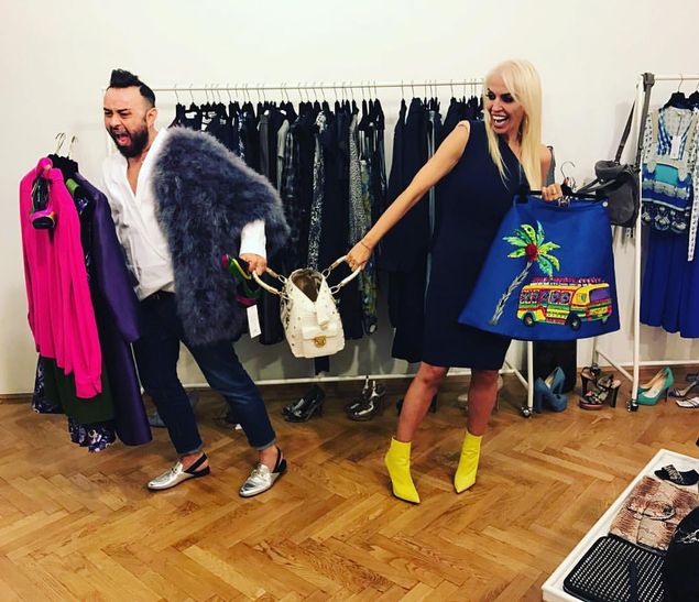 C: Raluca este un personaj autentic iar eu ador asta la oameni. Cu Raluca pana si capriciile sau frivolitatile cotidiene se transforma in pastile cinematografice care ma inspira in crearea tinutelor. Mai departe de haine, "stilismul aprofunzit” este ceva ce tine de multa rabdare, cunoastere, autocunoastere si intelegere. Ca intr-o relatie, si aici trebuie sa tii cont de multe aspecte, sa faci concesii (fericite) si sa nu uiti sa te distrezi. Daca nu e si fun, mai bine sa nu fie! Iar noi avem mult umor si ne simtim bine. Uneori uita Dumnezeu de noi, la telefon o conversatie nu poate fi mai mica de o ora si jumatate iar cea mai lunga a fost una transantlantica de vreo 4 ore. Daca are fite i le retez imediat, daca cere explicatii ii justific imediat, fixatiile i le demontez mai mereu, iar legat de emisiune, in general la tv, bineinteles, trebuie tinut cont de o sumedenie de factori precum lumina de studio, decor, ora de difuzare, tema emisiunii, in ce culori se imbraca colegii de platou, ca, pe ansamblu sa fie armonie.