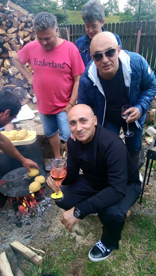 "La un bulz ciobanesc si un pahar de vin buuuuuun....!!!Alaturi de fratele meu George Pavel,intreaga familie si prieteni!", a scris cantaretul pe contul sau.