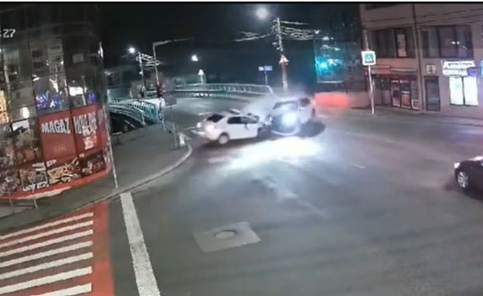 Impactul devastator a fost surprins de camerele de supraveghere din zonă. În imagini se vede cum mașina condusă cu viteză de șoferul de 29 de ani intră în contrasens, în apropiere de o curbă. Pierde controlul volanului și lovește din plin o autospecială de poliție, care circula regulamentar.