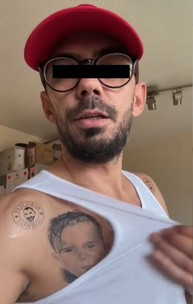 Pe pagina sa de TikTok, bărbatul a publicat un filmuleț în care anunța că și l-a tatuat pe Pescobar. A venit și cu dovezi, arătând că are două tatuaje, cu chipul și numele afaceristului, pe ambii umeri.