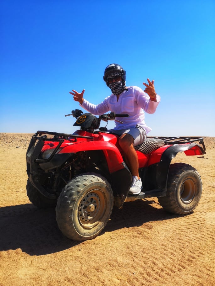 "Chiar dacă nu se recomandă, eu am riscat și am mers în Egipt, într-o vacanță. M-am întors mai sănătos decât m-am dus. Am înotat în Marea Roșie, am făcut diving, am făcut safari prin deșertul Sahara, am vizitat sătucul Beduinilor, am băut din ceaiul lor și am mâncat pâine coaptă pe o tavă tipică. O vacanță de neuitat. De ce Egipt? Din motiv că sunt un împătimit de mitologia acestui popor, iar acasă am mai multe statui din panteonul respectiv.