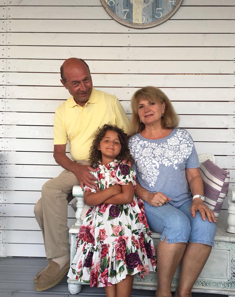 Maria Băsescu arată foarte bine, e zâmbitoare, însă bunicul Traian Băsescu este mândru tare, ținându-și ăn brațe cea mai mică nepoată, și de o parte și de alta pe ceilalți doi copii mai mari ai Elenei Băsescu.