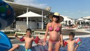 Elena, sotul ei si Ana, sora vedetei s-au amuzat copios de jocurile copiilor, dar si de rugamintile lor nastrusnice de a mai fi lasati cateva minute in piscina.