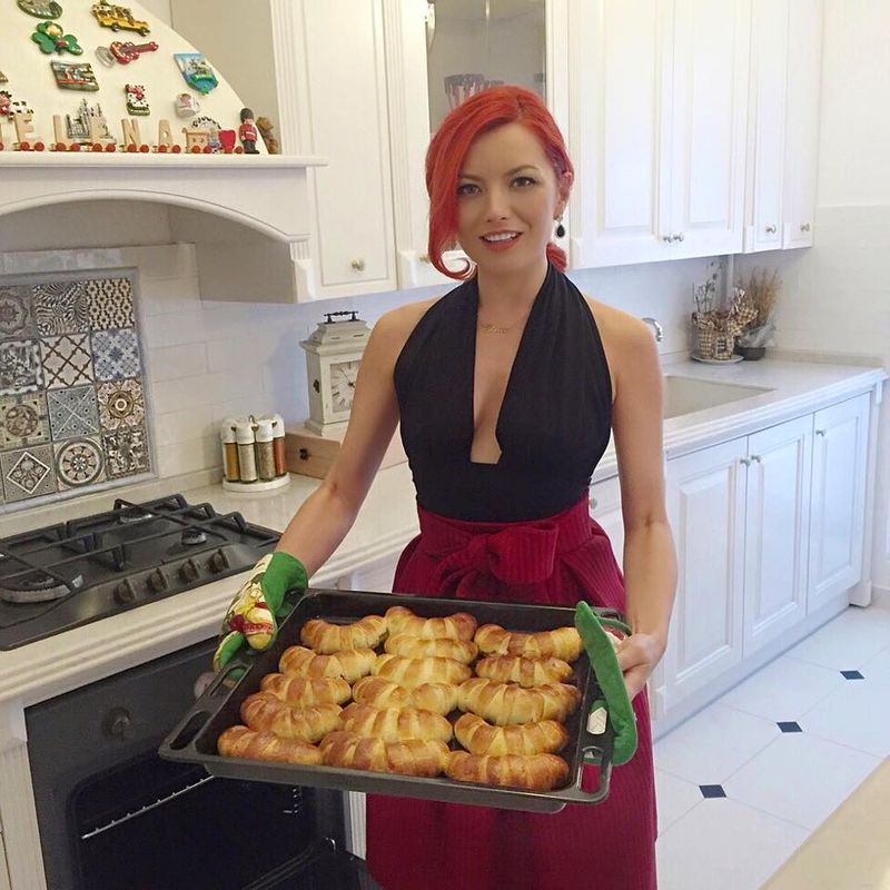 Cantareata a pregatit o tava de cornuri cu mar, scortisoara si miere si se pregateste sa mai faca una cu ciocolata. Arata bine, gateste, canta si e o mamica devotata, ce mai, sotul ei se poate declara un barbat implinit.
