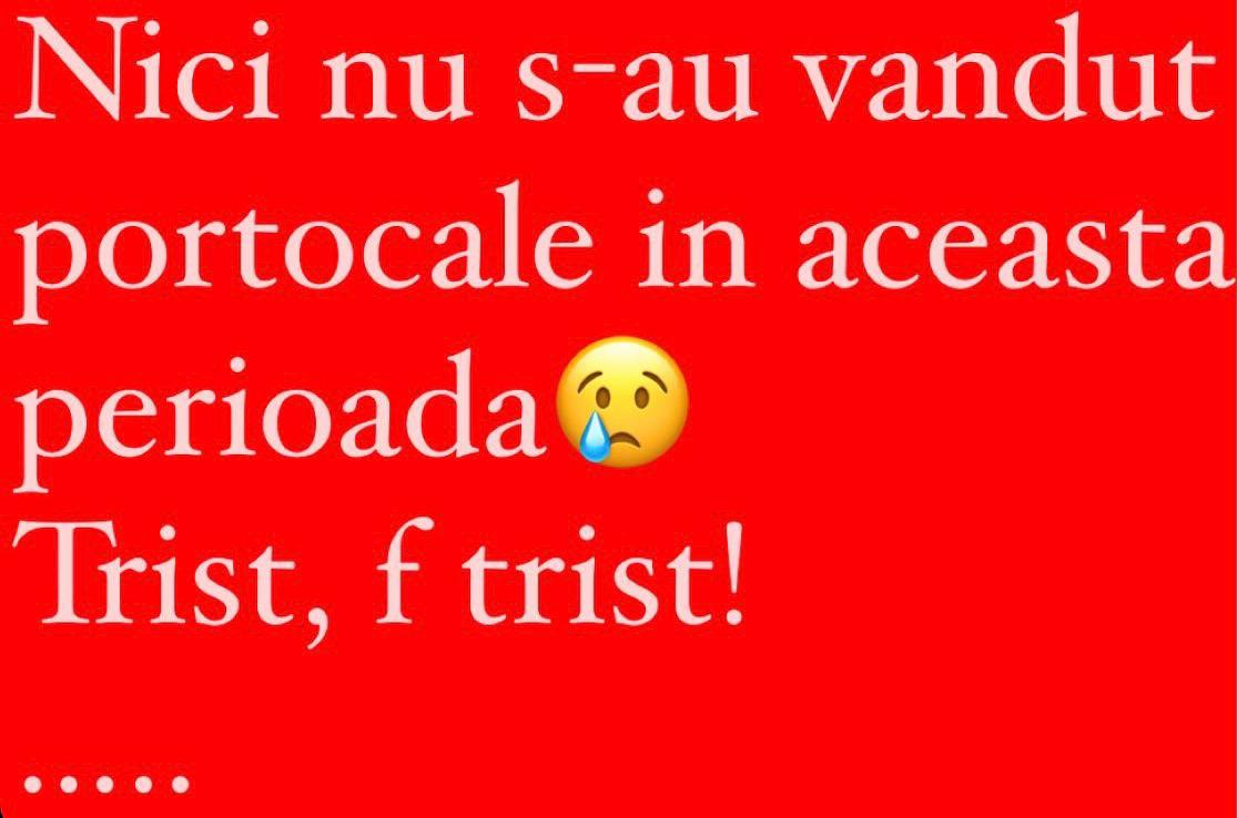 “Nici nu s-au vândut portocale în această perioadă…Trist, foarte trist!”, a adăugat cântăreața.