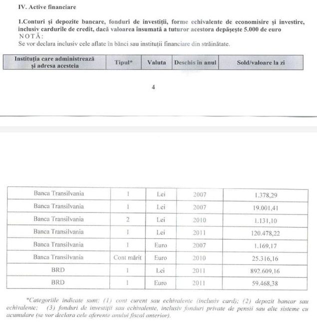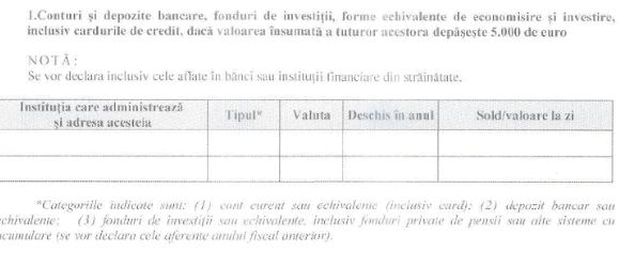 Asa arata rubrica privind conturile, din declaratia de avere din 2015
