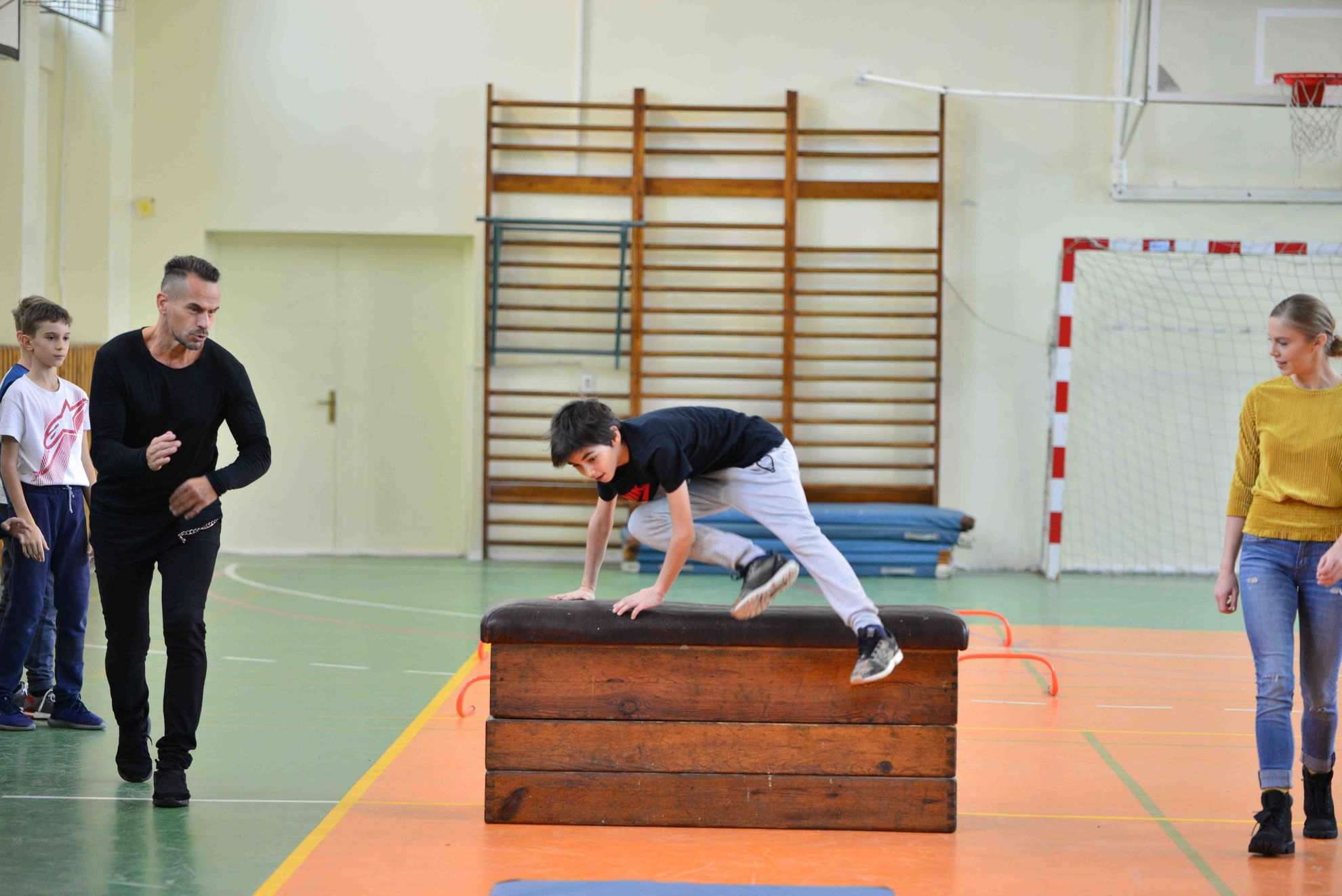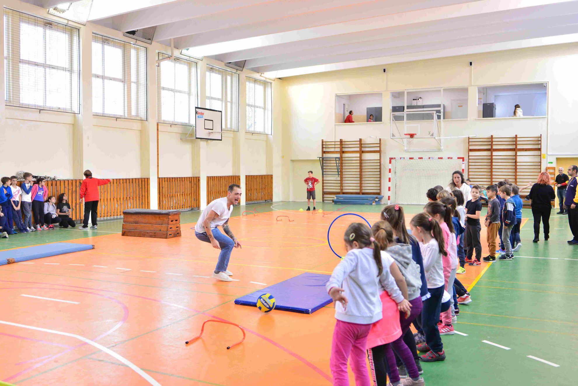 Elevii de la Colegiul German Goethe, la „Ora de Exatlon”! Fostii concurenti „Exatlon” au trait la maximum, alaturi de copii, emotia evolutiei pe traseele organizate in sala de sport