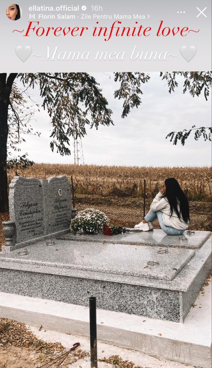 Ella a mers recent la mormântul mamei sale, ducându-i și un buchet cu trandafiri roșii. Tânăra s-a așezat pe piatra funerară, acolo unde trupul mamei sale își face somnul de veci, încă neîmpăcată în totalitate cu ideea că cea care a adus-o pe lume a plecat din viața sa atât de brusc. Pe fundal, a atașat și o melodie reprezentativă, foarte emoționantă, cântată de Florin Salam, „Zile pentru mama mea”.