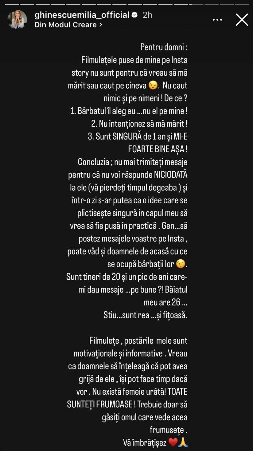 Mesajul transmis de Emilia Ghinescu pe Instagram