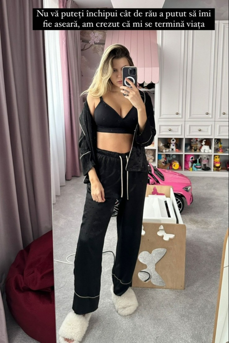 „Nu vă puteți închipui cât de rău a putut să îmi fie aseară, am crezut că mi se termină viața.”, a scris Emily Burghelea, în dreptul unei imagini cu ea.