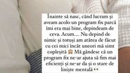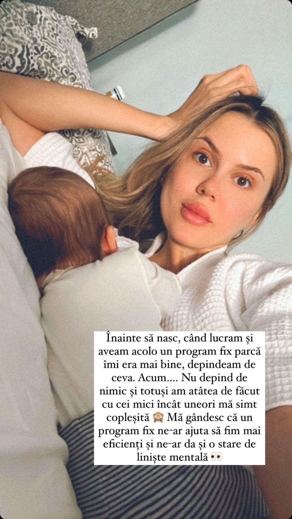 Înainte să nasc, când lucram și aveam acolo un program fix parcă îmi era mai bine, depindeam de ceva.