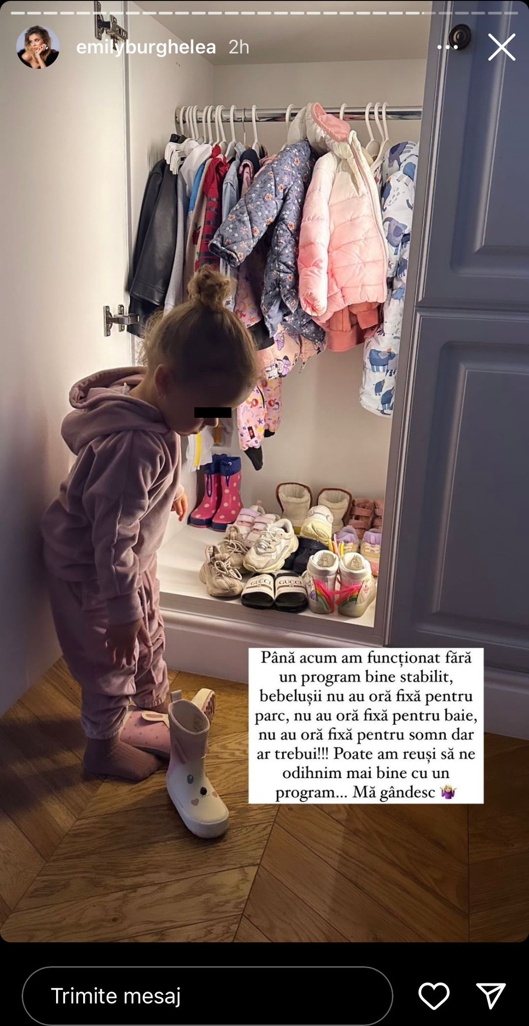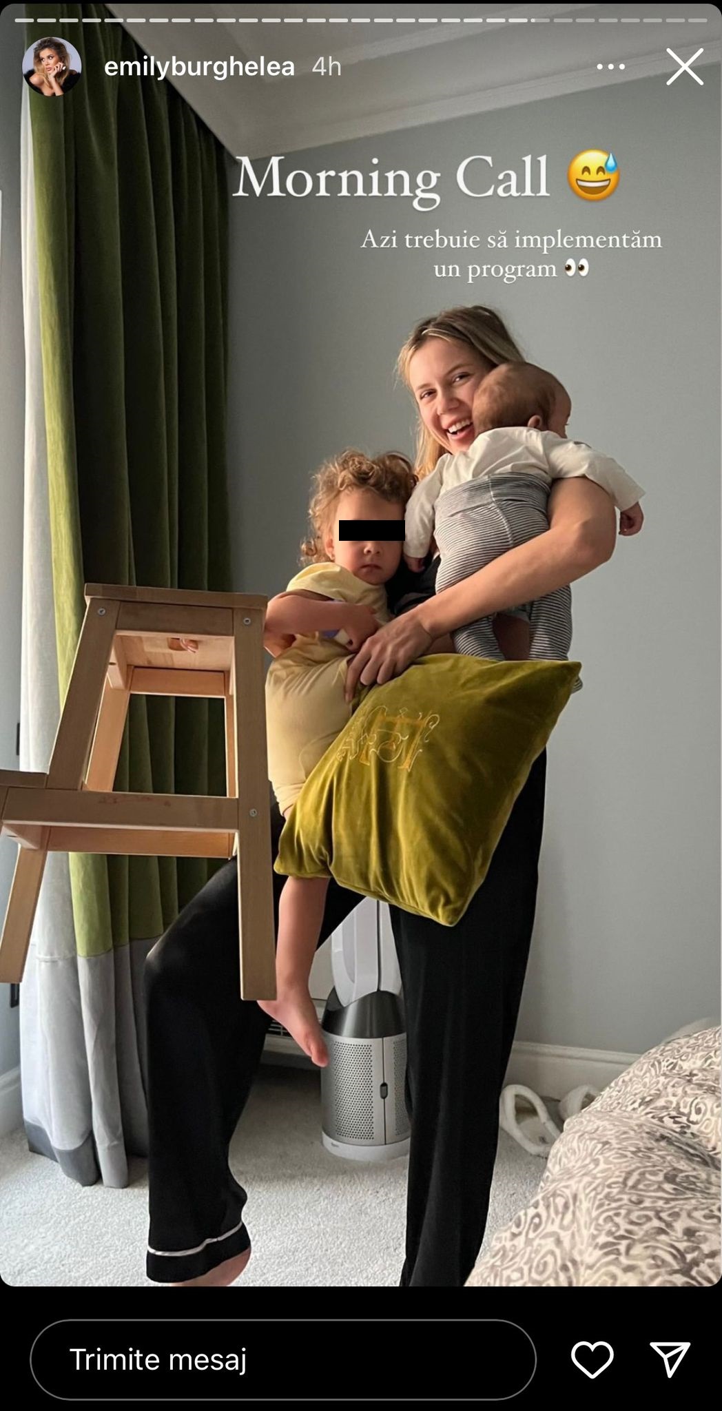 „ Dimineața, la noi totul este pe grabă. Vreau să face cumva să fim mai organizați, să avem mai mult timp ”, a explicat Emily Burghelea pe pagina sa de Instagram.