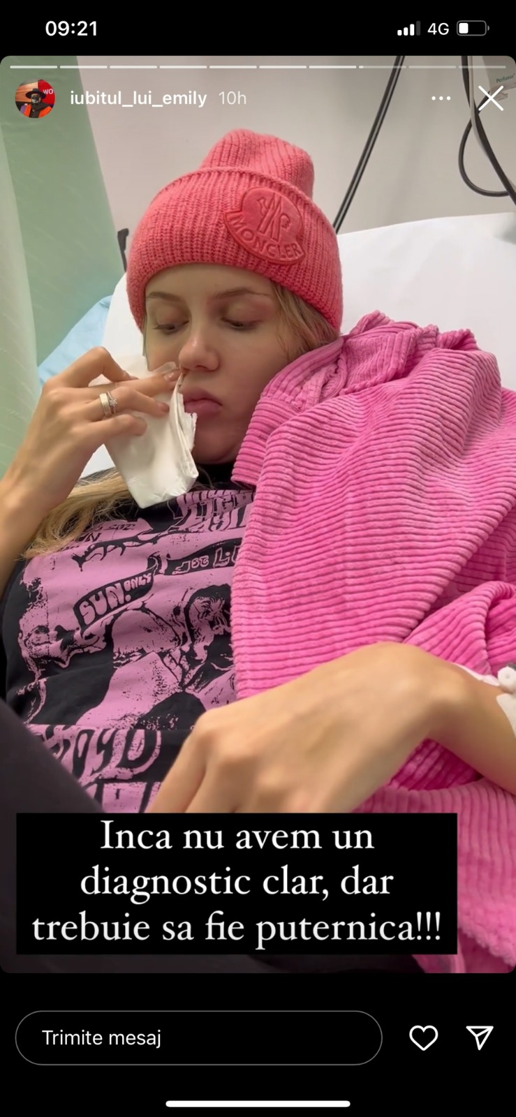 Atât Emily Burghelea, cât și iubitul ei sunt foarte activi în mediul online și împărtășesc cu fanii toate momentele din viața lor. Din nefericire, în ultima perioadă Emily s-a simțit tot mai rău, însă asta nu a împiedicat-o să își țină urmăritorii la curent cu privire la starea sa de sănătate.