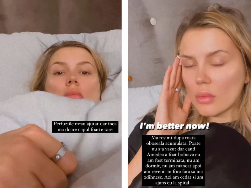 Totuși, aceasta trebuie să aibă pentru o perioadă mai multă grijă de propria persoană și va fi ca nouă.„Sunt mai bine acum. Mă resimt după toată oboseala acumulată. Poate nu s-a văzut, dar când Amedea a fost bolnavă eu am fost internată.