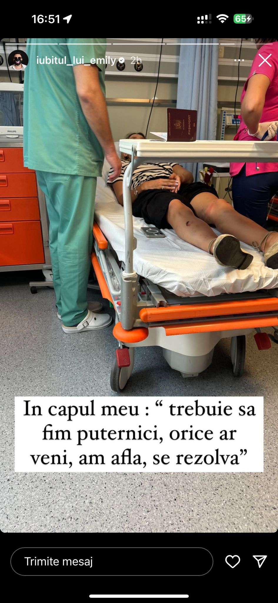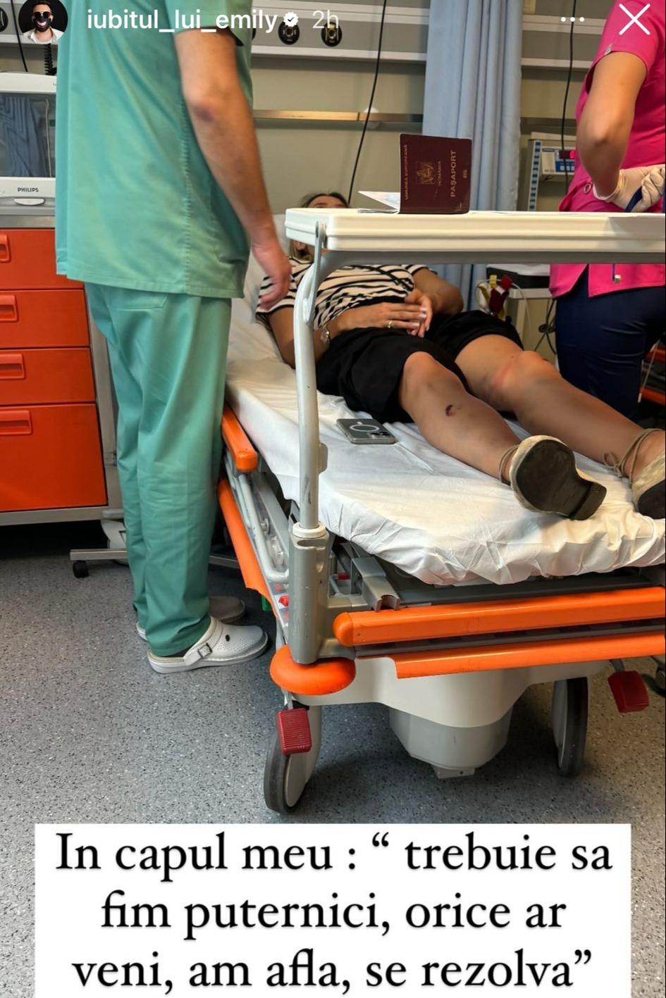 „În capul meu: <<Trebuie să fim puternici, orice am veni, am afla, se rezolvă>>”, a scris Andrei, soțul lui Emily Burghelea, pe pagina personală de Instagram în dreptul unei imagini cu tânăra pe patul de spital.