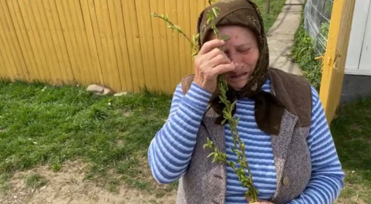 Emilia Ciurușniuc din Vaslui a început să plângă când a primit ramura de salcie sfințită de la voluntari și nu de la preotul bisericii din sat