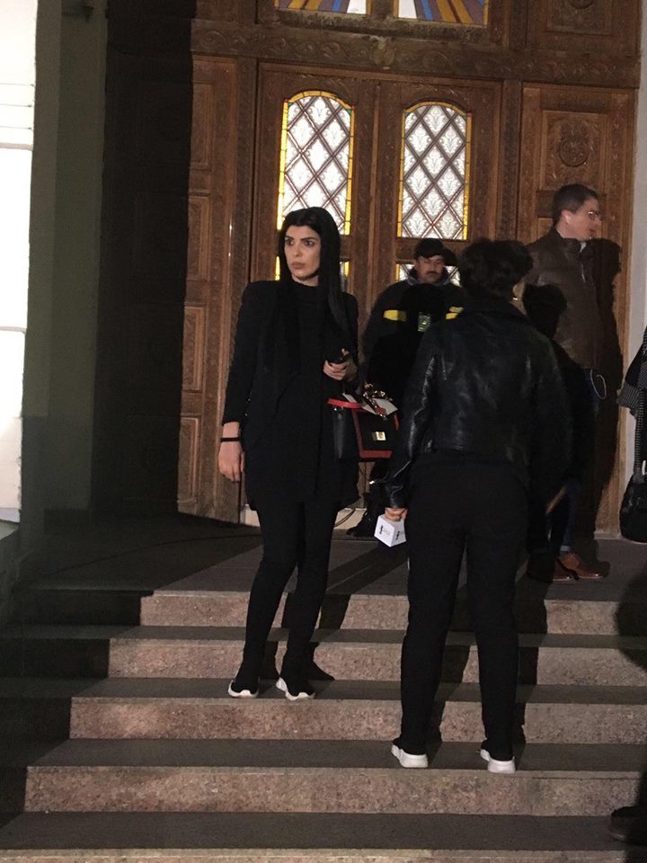 Andreea a venit si ea la priveghiul Ionelei Prodan, de la capela Cimitirului Bellu. Imbracata in negru, ea a fost surprinsa pe scarile capelei, avand o privire trista.