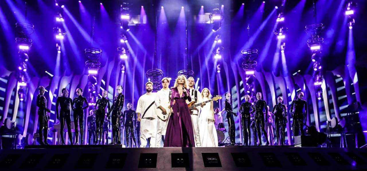Pe langa vestimentatia care atragea toate privirile, Cristina si colegii ei de la The Humans au oferit si un show de zile mari pe scena Eurovision 2018, cu cei peste 30 de oameni prezenti in show, si mastile albe purtate de manechine.