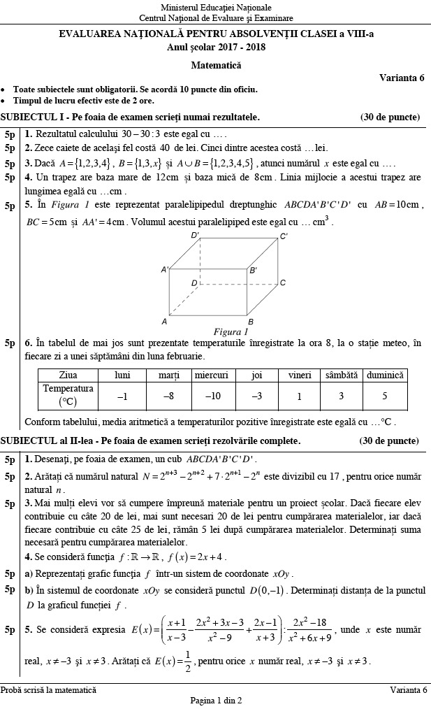 Iată care au fost subiectele la Evaluare Naţională 2018 Matematică:
