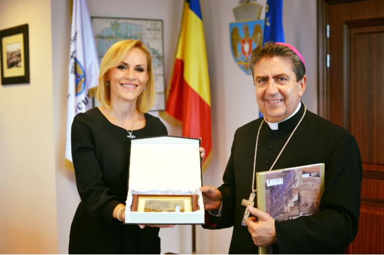 “Am primit cu onoare vizita Nuntiului Apostolic – reprezentantul Suveranului Pontif in Romania – Excelenta Sa Monseniorul Miguel Maury Buendia. Se fac pasi, in aceasta perioada, pentru vizita Suveranului Pontif la Bucuresti – un eveniment istoric”, a scris Gabriela Firea.