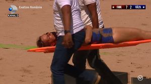 Războinica Irina Postolea s-a lovit pe traseu, la tiroliană. Deși a reușit să termine meciul, la finalul acestuia, s-a prăbușit. Irina a căzut la pământ și nu a mai putut să respire. Aceasta a declarat că nu vede bine, iar medicii au intervenit imediat.
