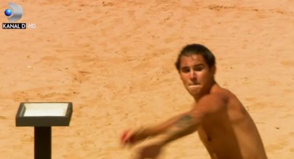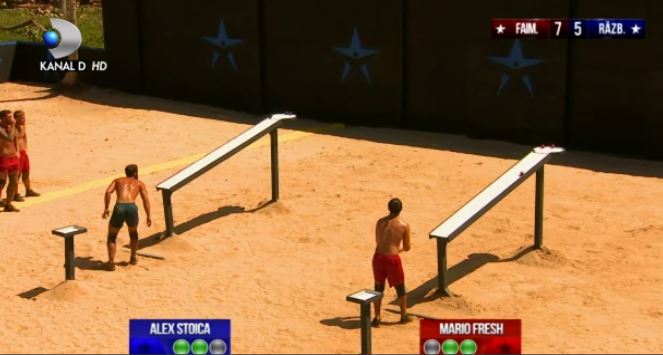 Mario Fresh a pierdut punctul în fața adversarului lui de la Războinici, Alex Stoica, și a luat bilele de la traseu și a aruncat cu ele în panou.