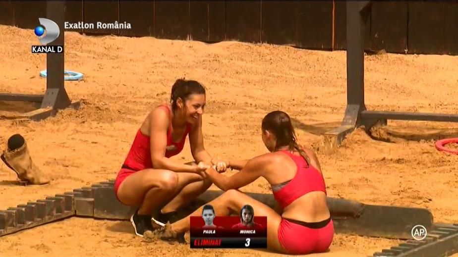 Exatlon 11 noiembrie. Paula Vieru părăseşte competiţia, după duelul cu Monica Roşu. Paula şi Monica s-au îmbrăţişat la final, ambele având cuvinte frumoase una faţă de cealaltă.