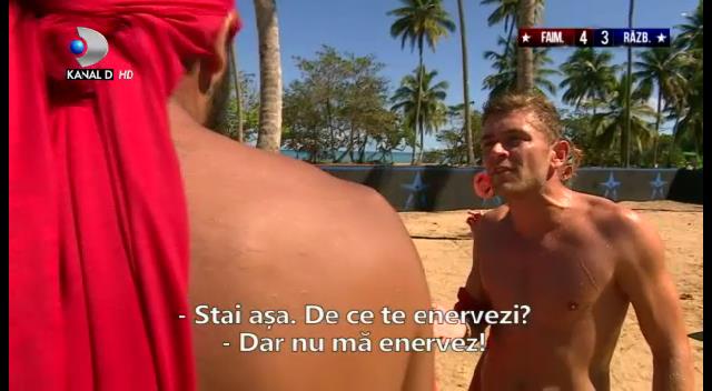 A fost nevoie de intervenția lui Mario Fresh pentru ca cei doi Faimoși, Giubi și Costin, să se potolească. „Băi, gata, mă! Ce aveți? Se uită la voi cum vă certați! Bă! Gata! Lasă și tu tonul mai joc, se uită ăștia! Zic că ne certăm, ești nebun?”, a spus cântărețul.