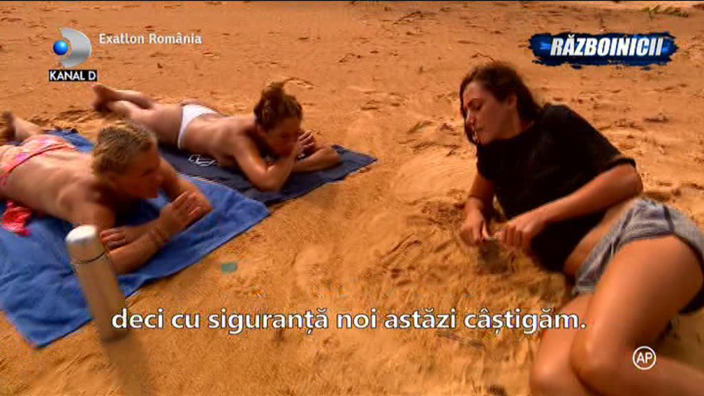 Alina si Mariana s-au bucurat de victorie printr-o sedinta de bronzare, pe plaja. Cele doua au facut topless, pentru a nu se bronza cu urme si au profitat de iesire pentru a discuta strategia pentru editia Exatlon 19 februarie.