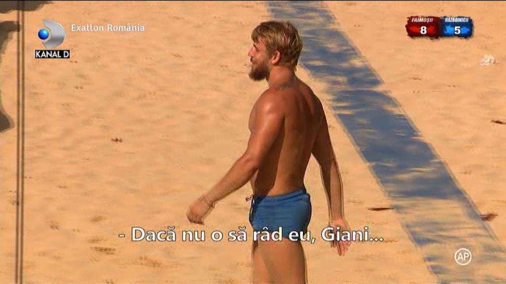 Giani nu s-a putut abtine si s-a luat de Ionut. "Sacalule, ia mai baga 20 de flotari, ca prea te-ai uitat urat". "Lasa, Giani, ca o sa rad eu", a promis el. "Cand, ma? Cand?", a vrut sa stie Giani Kirita. "De acasa, vazand finala la televizor", a intervenit imediat Geanina.